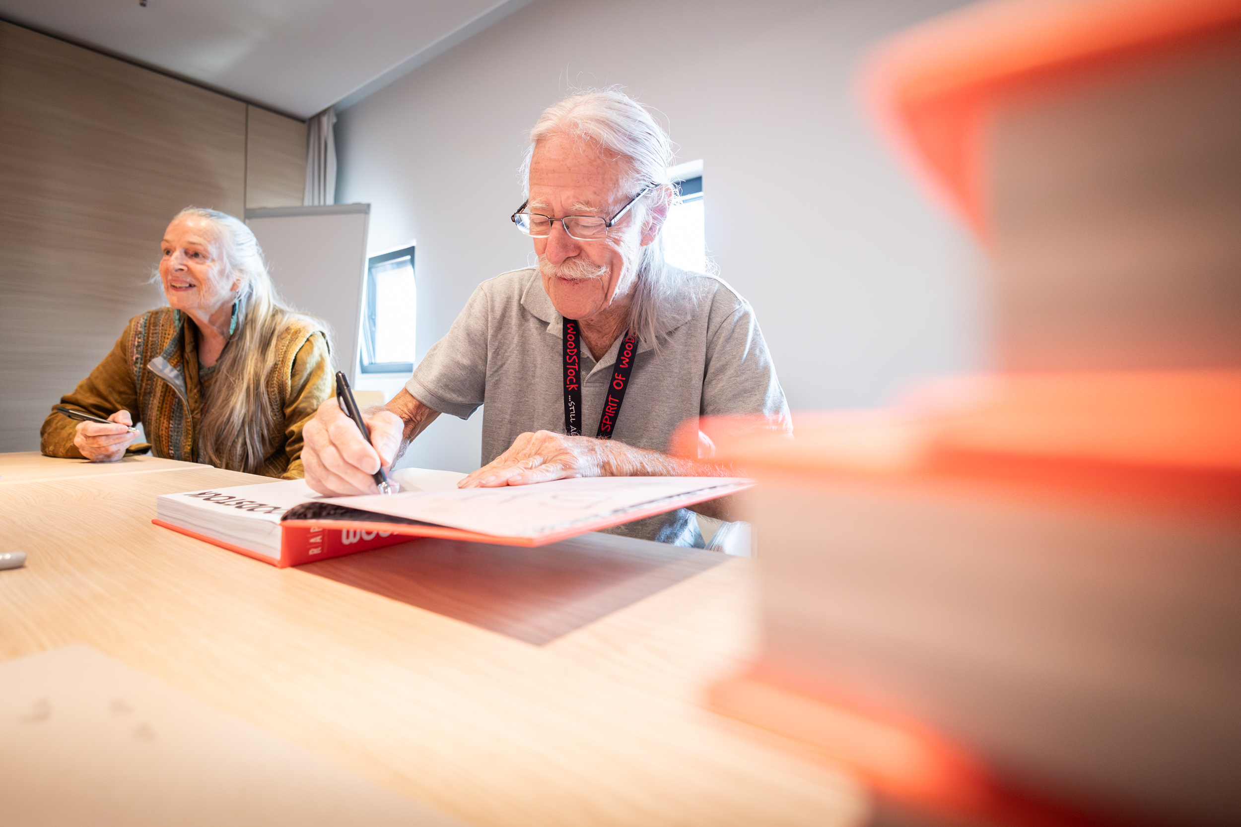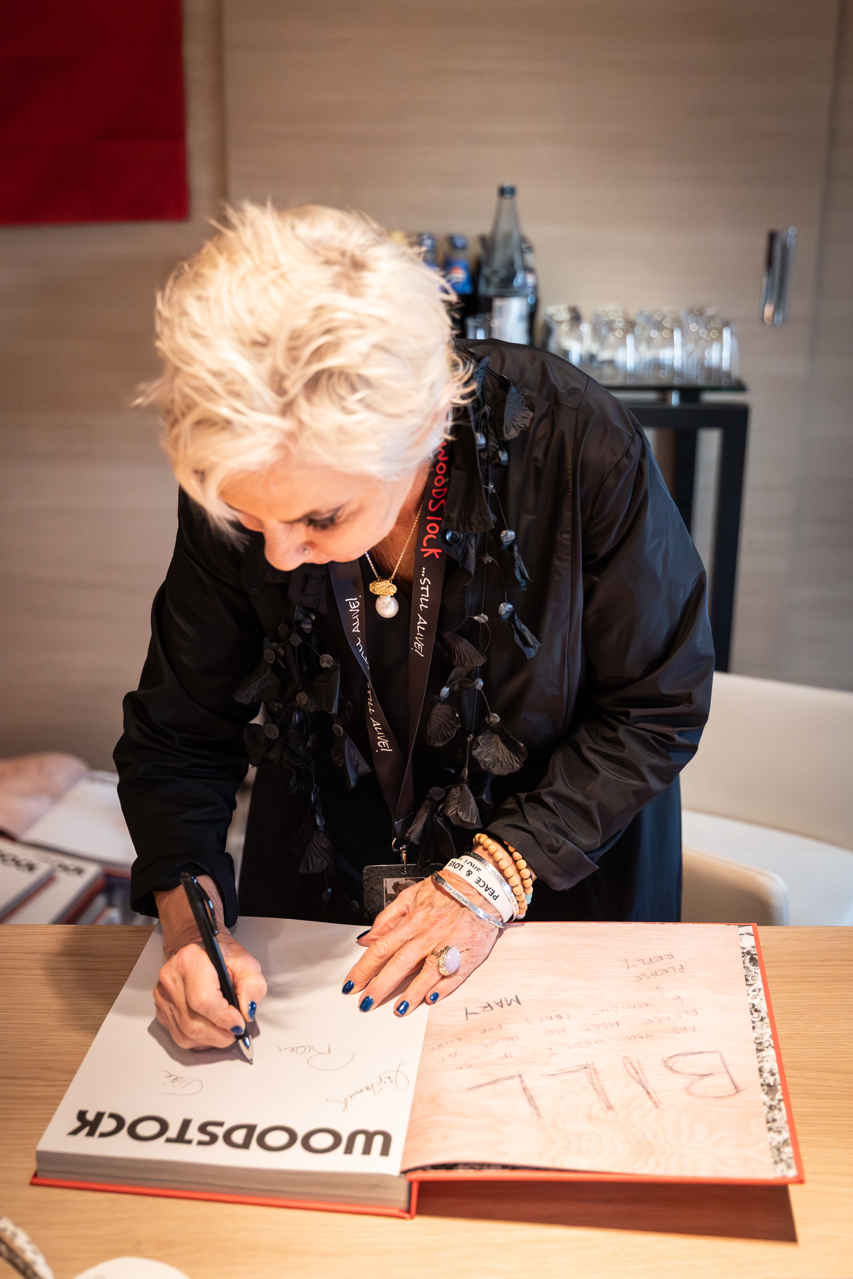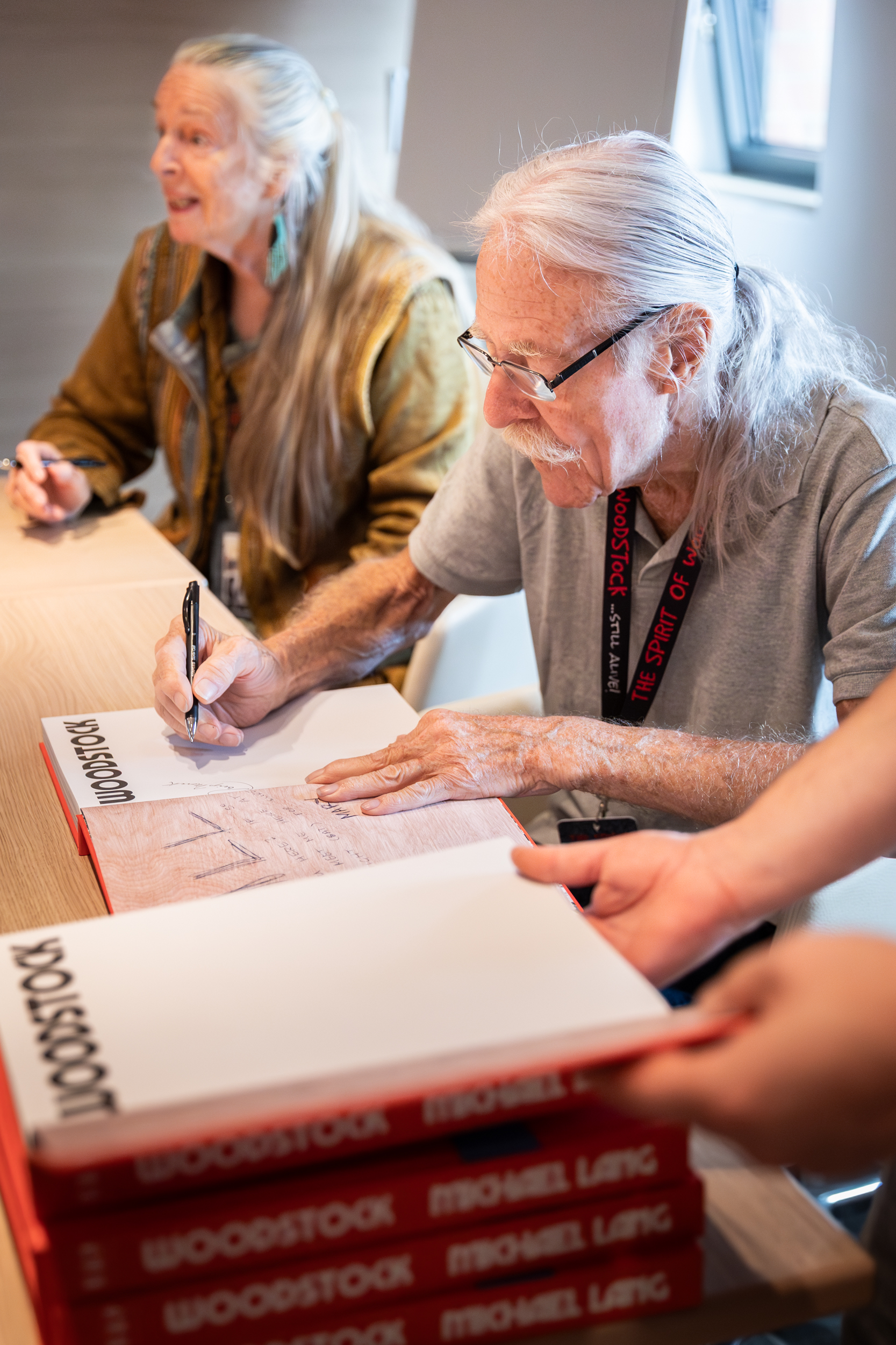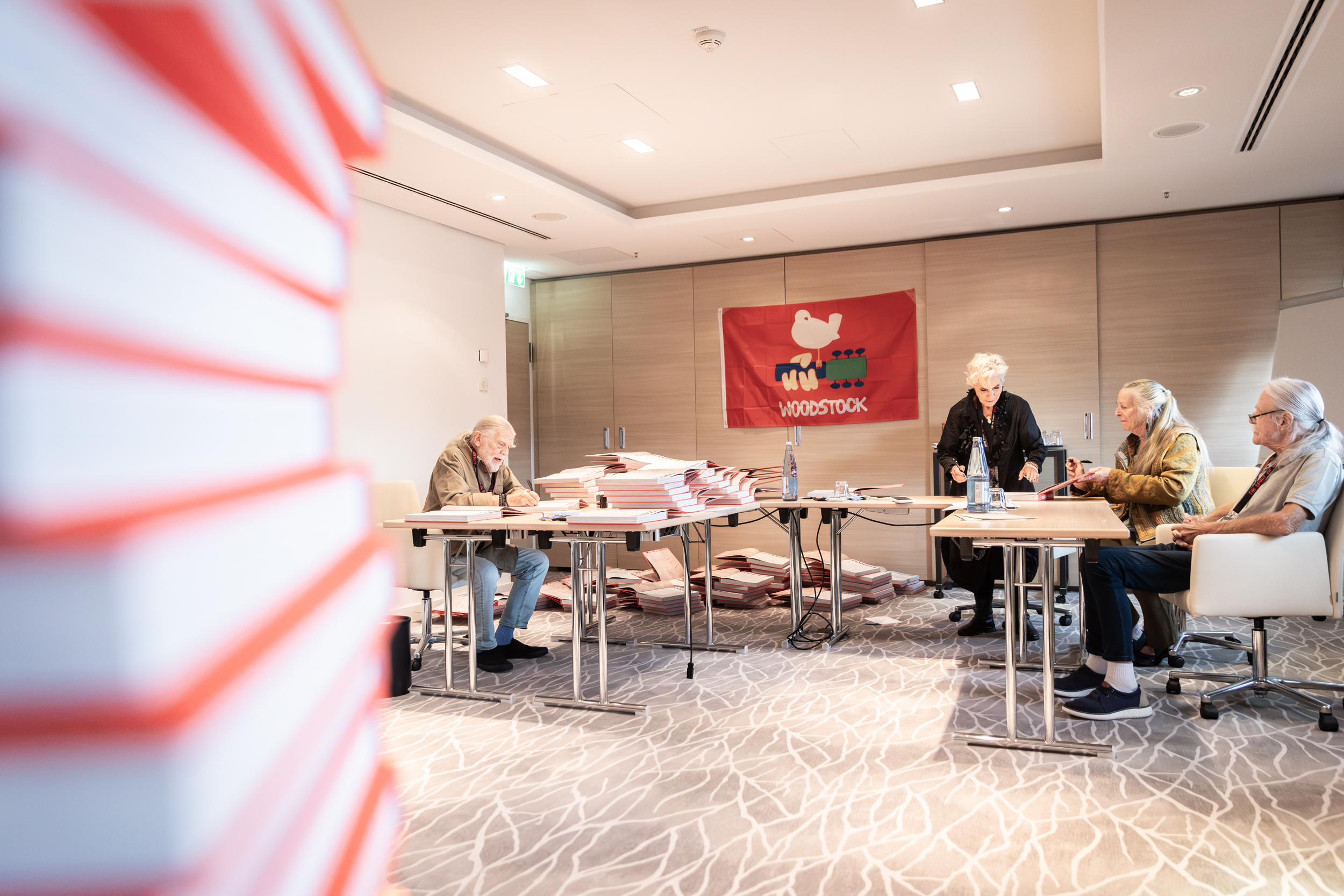 Anlässlich der unglaublichen Woodstock Tour „The Spirit of Woodstock“ – Still Alive im September 2025 in Deutschland haben diese 4 Woodstock Legenden die letzten verfügbaren Exemplare des Buches Woodstock – 3 Days of Peace & Music by Michael Lang signiert. Unterschrieben ist es von: Rona Elliot, Edward Herbert Beresford „Chip“ Monck, Ticia Bernuth Agri und Henry Diltz.